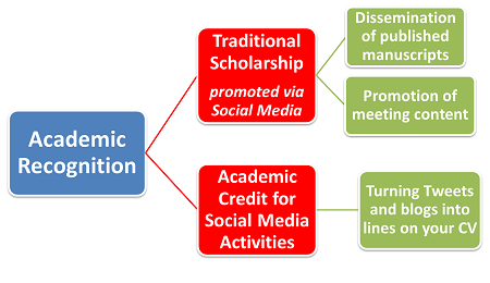With regard to the role of social media in scholarly activity, many investigators have begun to understand that web-based interfaces are an outstanding way to promote traditional scholarship. Less known, though, is how to get academic credit for social media activities (Figure).