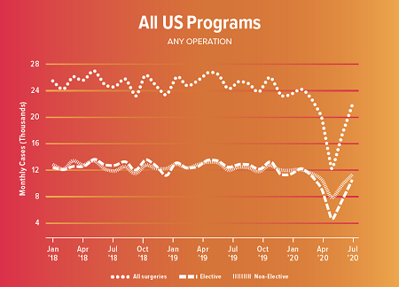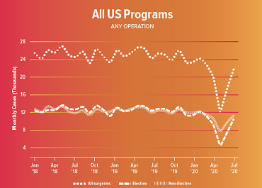 While the early stages of the pandemic clearly induced a surge of untreated patients, case volumes did not fully return to baseline after the initial COVID storm. It is unclear if these untreated patients were ever treated, according to Dr. Nguyen.