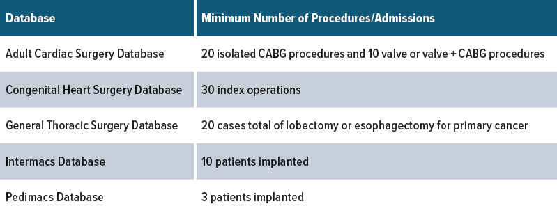 Each year, approximately 10% of participating sites are selected at random for audit. To be included in the audit pool, a site must be an active Database participant for all 12 months of the audited time period, have not successfully completed an audit in the past 3 years, and must have performed a specified number of procedures during that period.